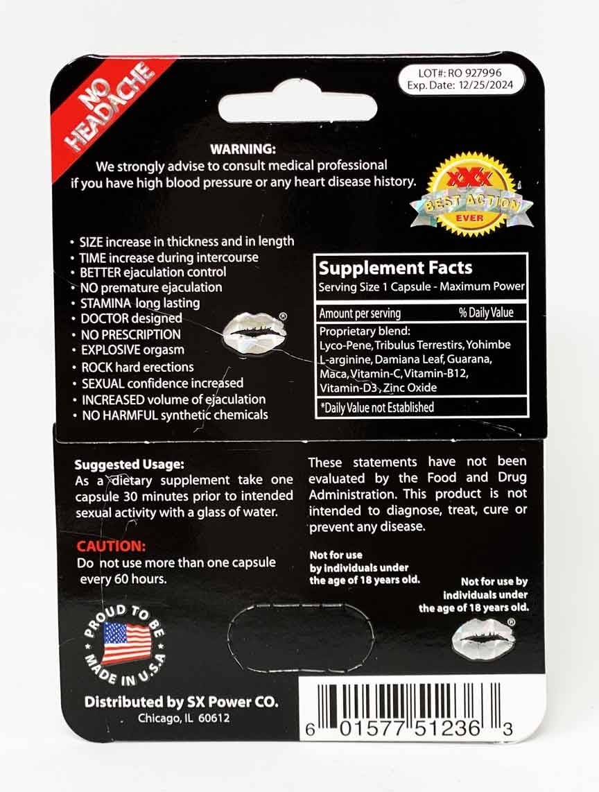 These products are marketed as dietary supplements for male sexual enhancement and are packaged in 1-count blister cards and can also be identified by the images below. The products were distributed Nationwide in the USA via internet sales via the website gearisle.com.